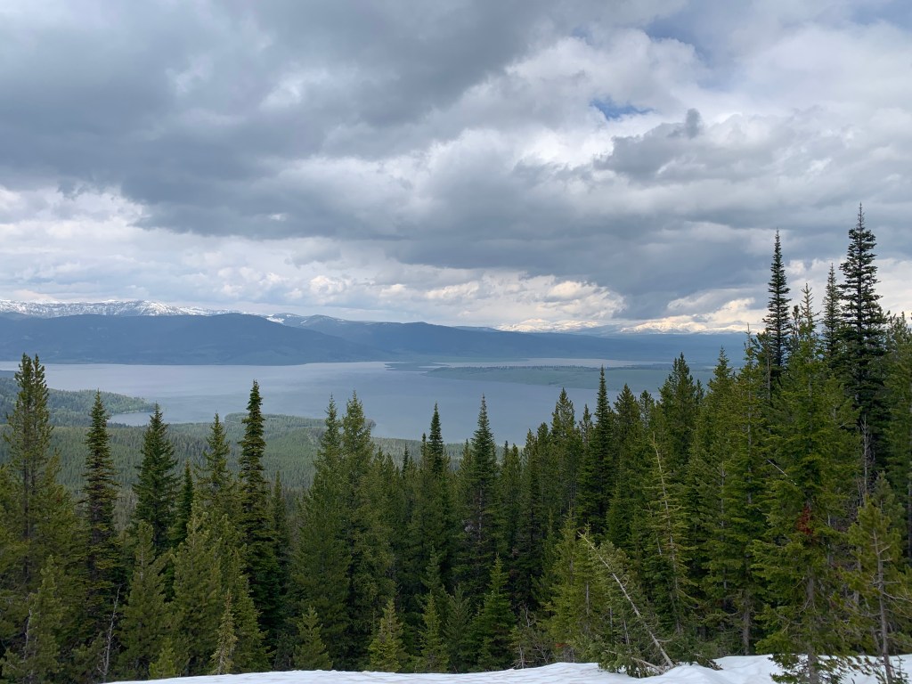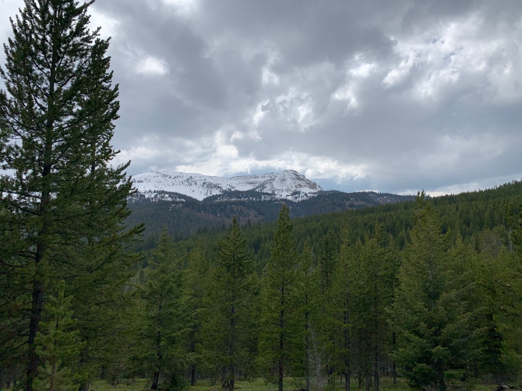 This impromptu decision ended up being one of the best adventures I’ve had so far, Yellowstone included. I drove along a long and winding dirt road, and eventually started to have fun just driving along the mountain pass. The scenery was beautiful, and the off-roading aspect of it made me feel like I was actually doing something, not just driving along. Eventually, the trees started to separate every now and then and finally I was met with a few glances of the mountain which had disappeared for a little while. Still snow-capped, it was absolutely gorgeous even on the once again cloudy day.